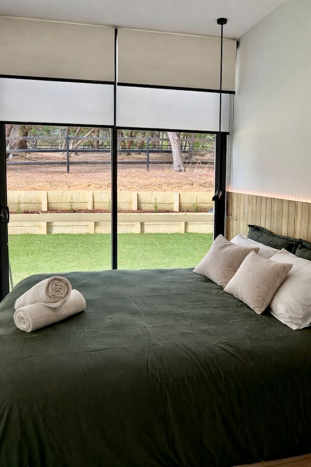 Set on peaceful acreage in a beautiful country setting, this brand new 2x2 retreat offers a relaxing escape surrounded by nature. The property features open horse paddocks and state-of-the-art stables, creating a serene rural atmosphere with wide open spaces, fresh air, and the quiet charm of country living. Thoughtfully designed with quality construction throughout, the home includes large double-glazed windows that flood the space with natural light and frame picturesque views of the surrounding landscape. Natural timber elements, warm finishes, and a cosy fireplace create a welcoming, homely feel β perfect for slowing down and unwinding. The home comfortably sleeps 4 guests in beds, with an additional sofa bed available for up to 2 more guests. This is a true country home, with all that entails β peaceful surroundings, occasional rural sounds, and a relaxed pace that makes it easy to switch off and recharge. Enjoy evenings in the outdoor spa under the stars, open skies, and the calm of acreage living, while still being within walking distance to a local brewery and the Yalgorup National Park.